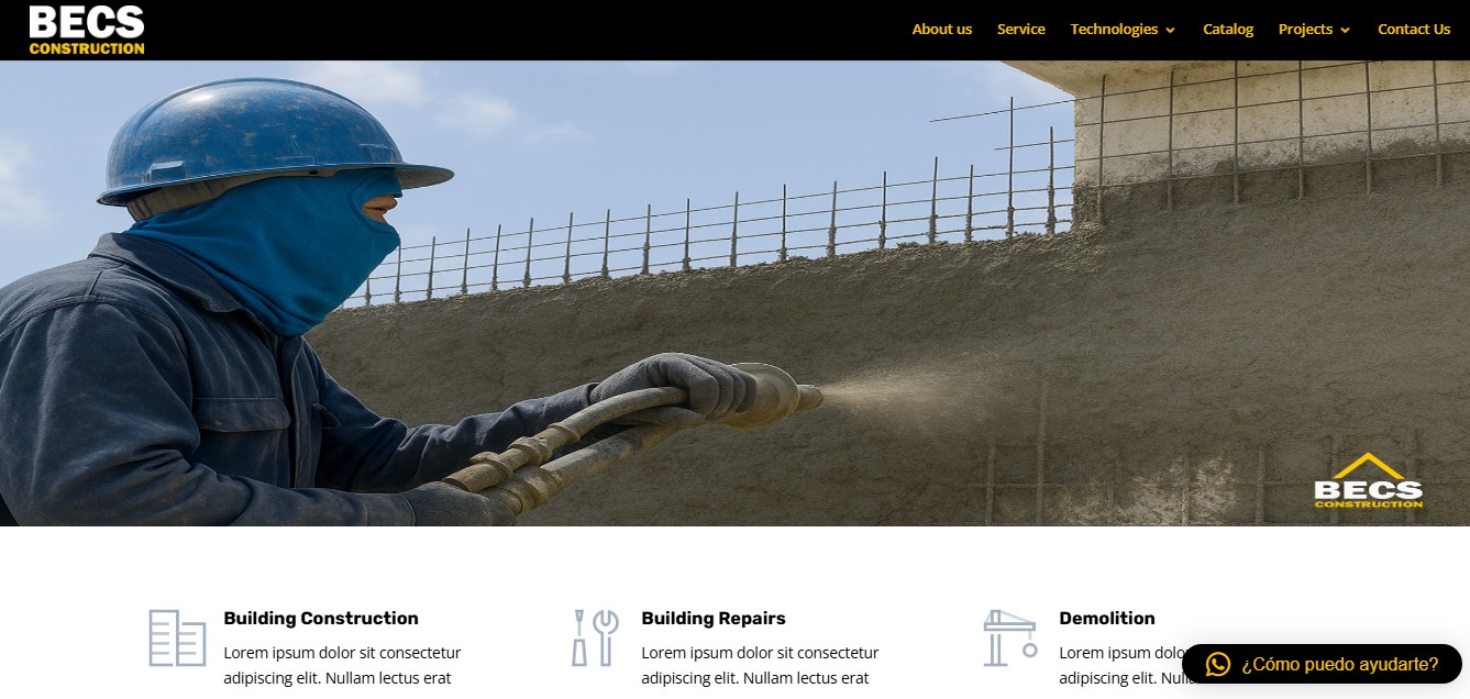 Diseño profesional que presenta servicios de construcción y remodelación, portafolio de proyectos y contacto claro y funcional.