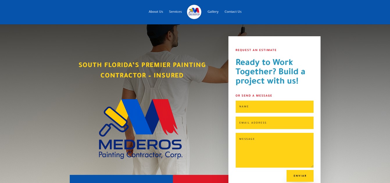 Sitio profesional que presenta servicios de pintura residencial y comercial, portafolio de trabajos, testimonios y formulario de contacto.